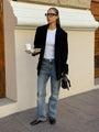 The black blazer is a refined wardrobe essential that unites a masculine cut with feminine elegance. With its clean design and relaxed silhouette, it transitions seamlessly from business looks to casual combinations.