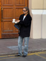 This blazer is designed in the style of “borrowed from the boys,” offering sharp proportions and a defined silhouette. The 75 cm length makes it easy to pair with trousers, skirts, jeans, or even shorts. Add a belt, scarf, or jewelry, and the look shifts effortlessly from minimalist to evening-ready.