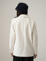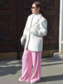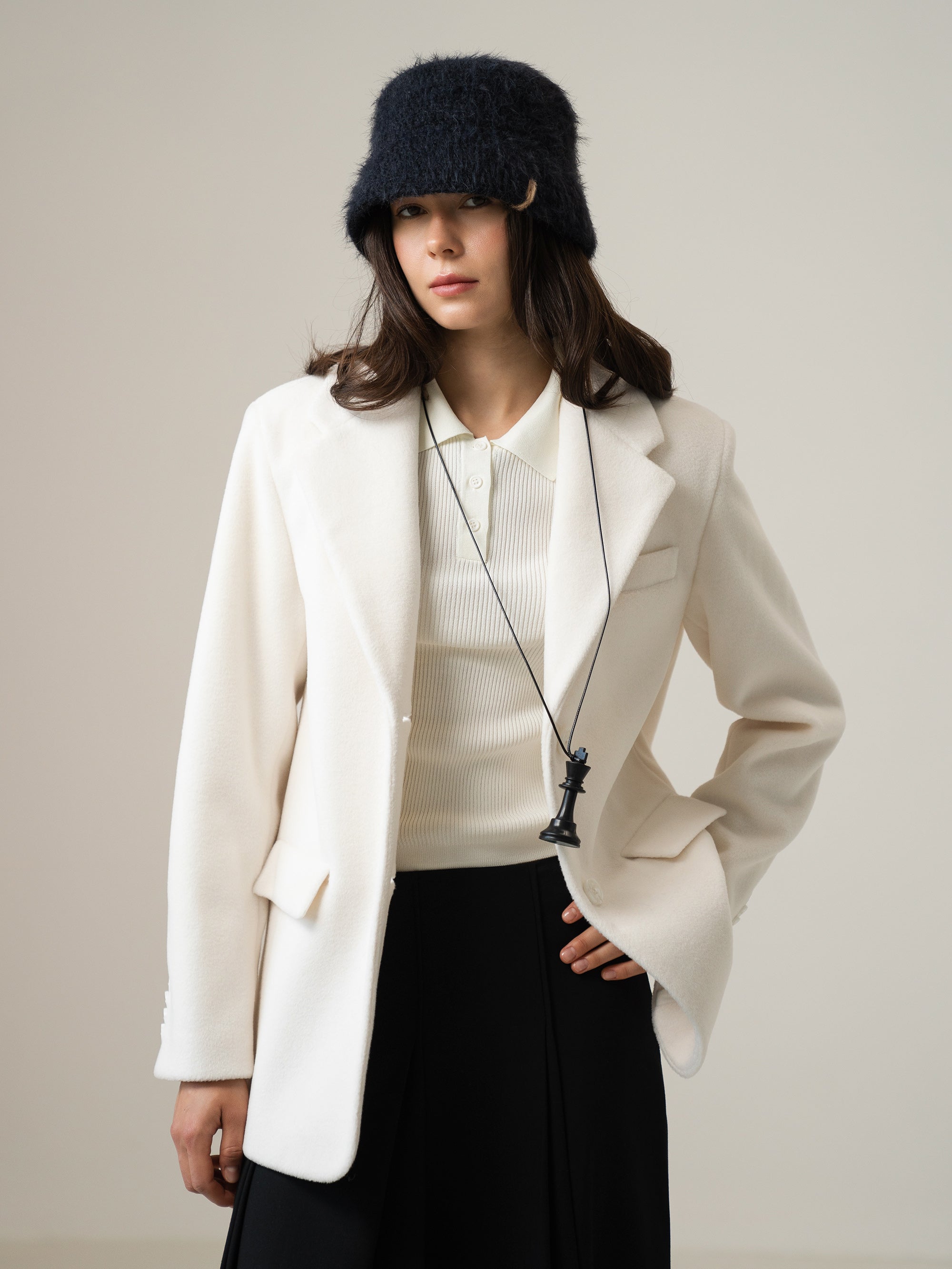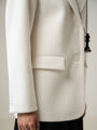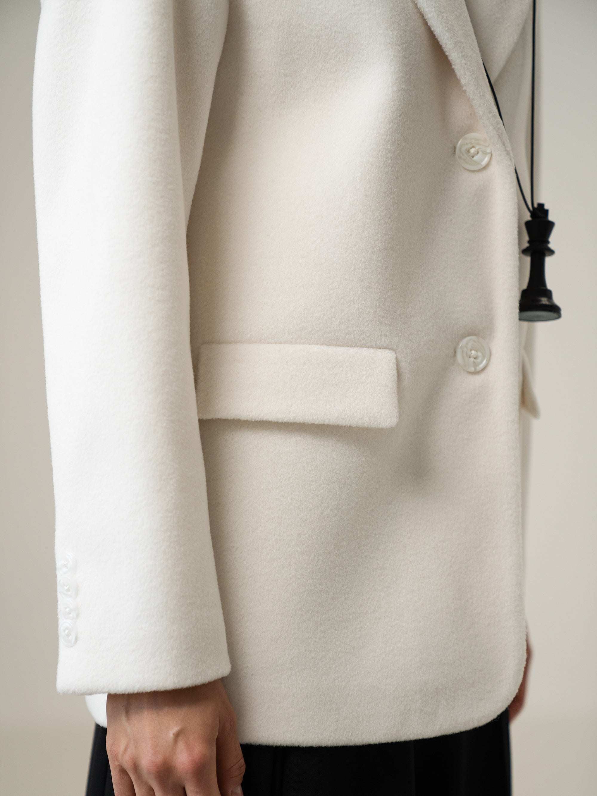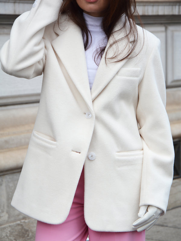The ivory blazer is a modern wardrobe accent that blends masculine tailoring with feminine elegance. Its relaxed silhouette makes it equally suited for classic ensembles or casual outfits.